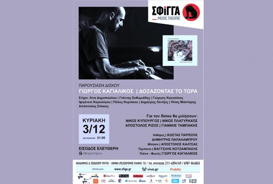 Την Κυριακή 3 Δεκέμβρη,στη Μουσική Σκηνή ΣΦΙΓΓΑ, ο Γιώργος Καγιαλίκος παρουσιάζει, με ελεύθερη είσοδο, τον δίσκο "Δοξάζοντας το τώρα" που κυκλοφόρησε πριν λίγους μήνες από τις εκδόσεις "Μετρονόμος".